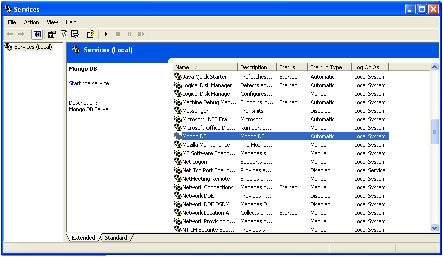 Service can be started from the command line via ‘net start “MyMongoService“‘.