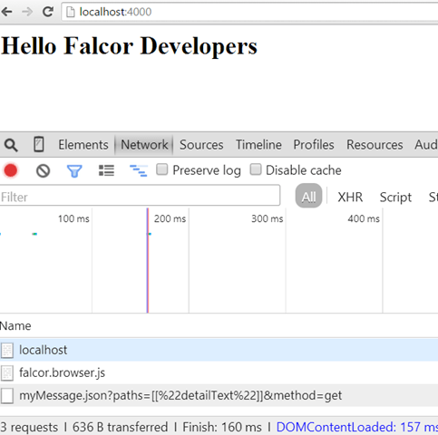 - The output of the demo looks like following screenshot.We can observe the requested URL created by the Falcor in the chrome developer console.